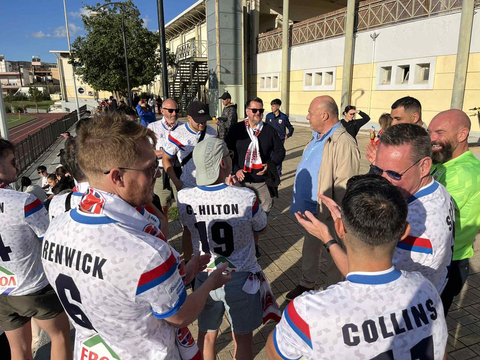 Υπ' όψιν ότι τον αγώνα θα δούν ζωντανά και οι ... Άγγλοι φίλοι της Μάντσεστερ Γιουνάϊντεντ και του Βόλου, οι οποίοι σήμερα Κυριακή, βρέθηκαν στο Βασδέκειο, όπου η ομάδα γυναικών του Βόλου κέρδισε την Θύελλα Μοσχάτου με 3-0, φορώντας φανέλες της ομάδας μας με το όνομά τους, ενώ μαζί τους συνομίλησε και ο πρόεδρος Αχιλλέας Μπέος.